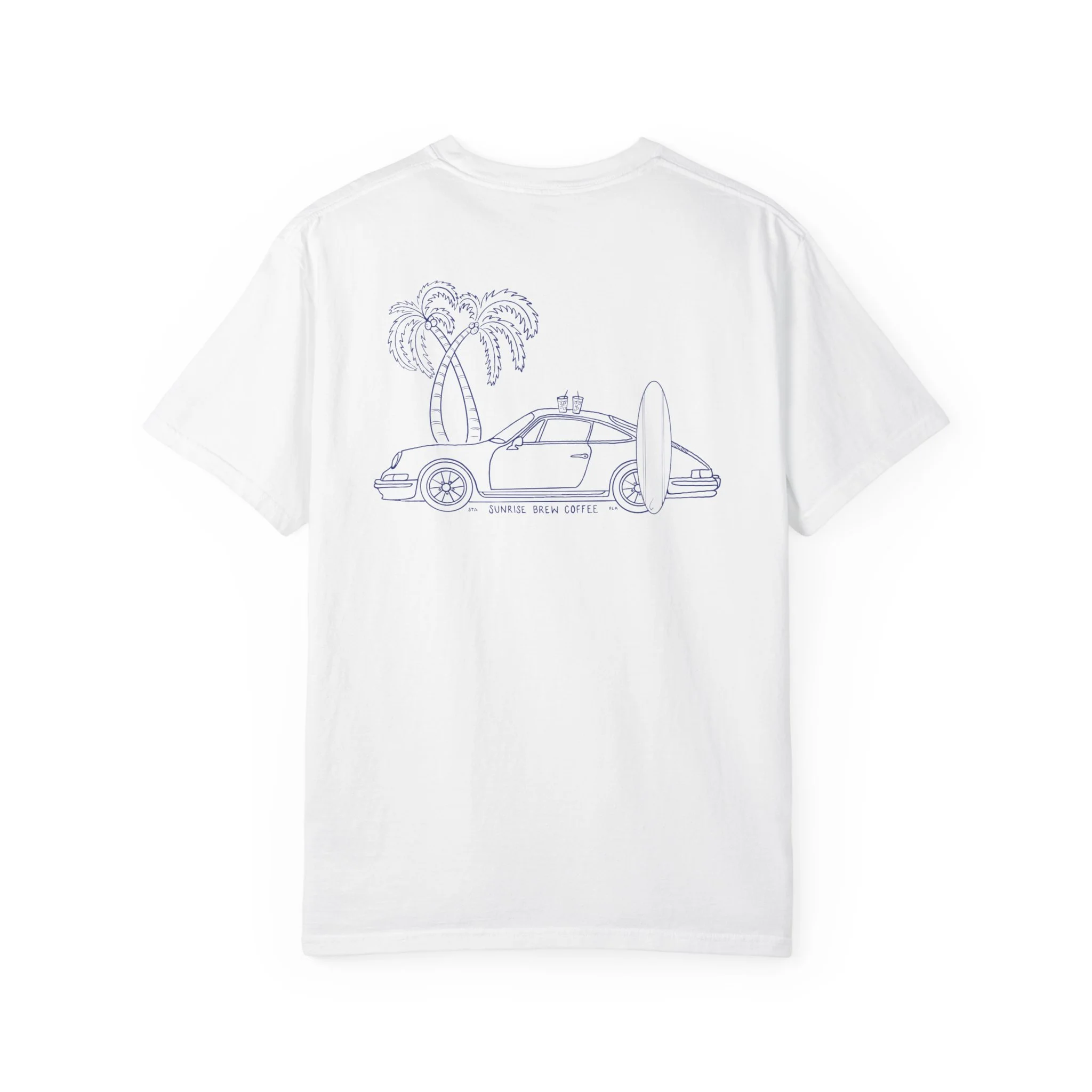Your new everyday favorite. This soft, lightweight tee features our signature coastal cruiser design—complete with palms, a surfboard, and coffee in hand. It’s an easy throw-on that captures the laid-back Sunrise vibe, whether you’re heading to the beach or grabbing your morning brew.